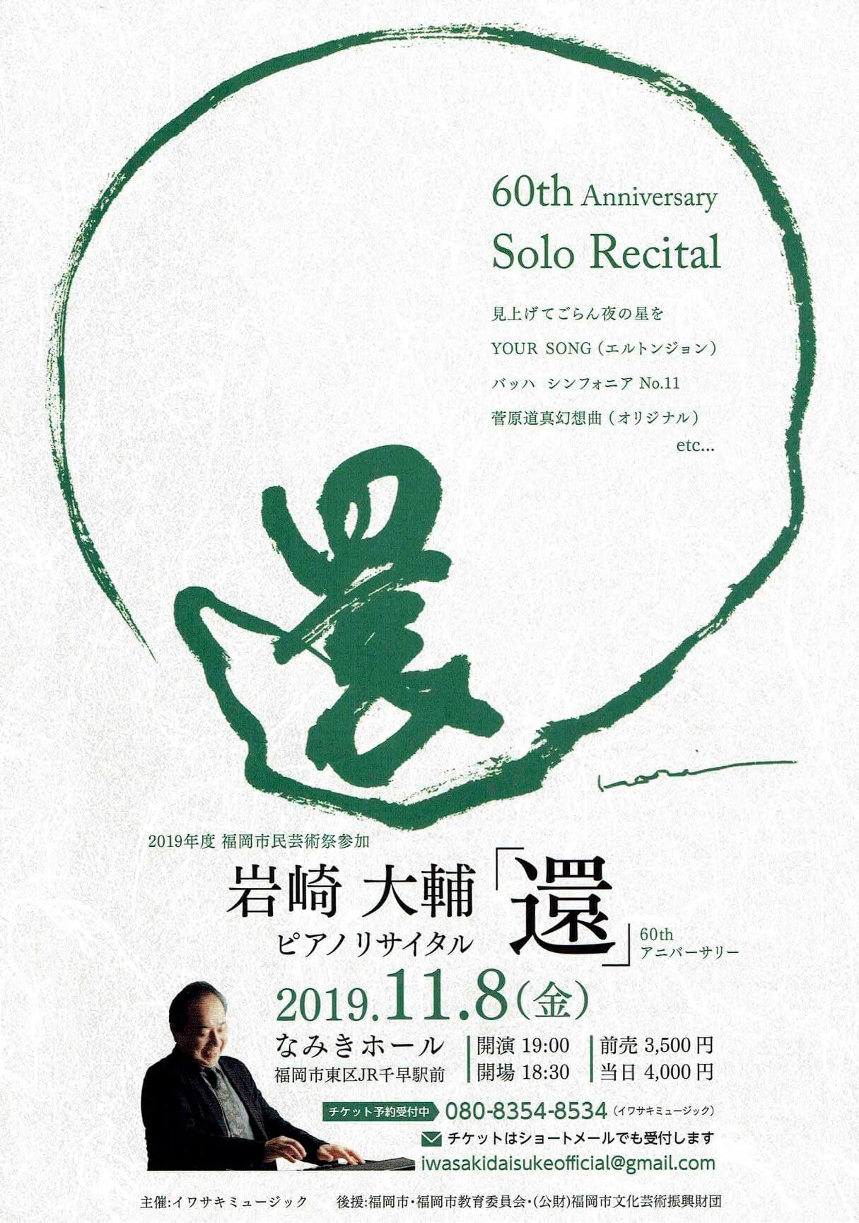 2019年11月8日以来のピアノソロです。 ピアニスト岩崎大輔 |